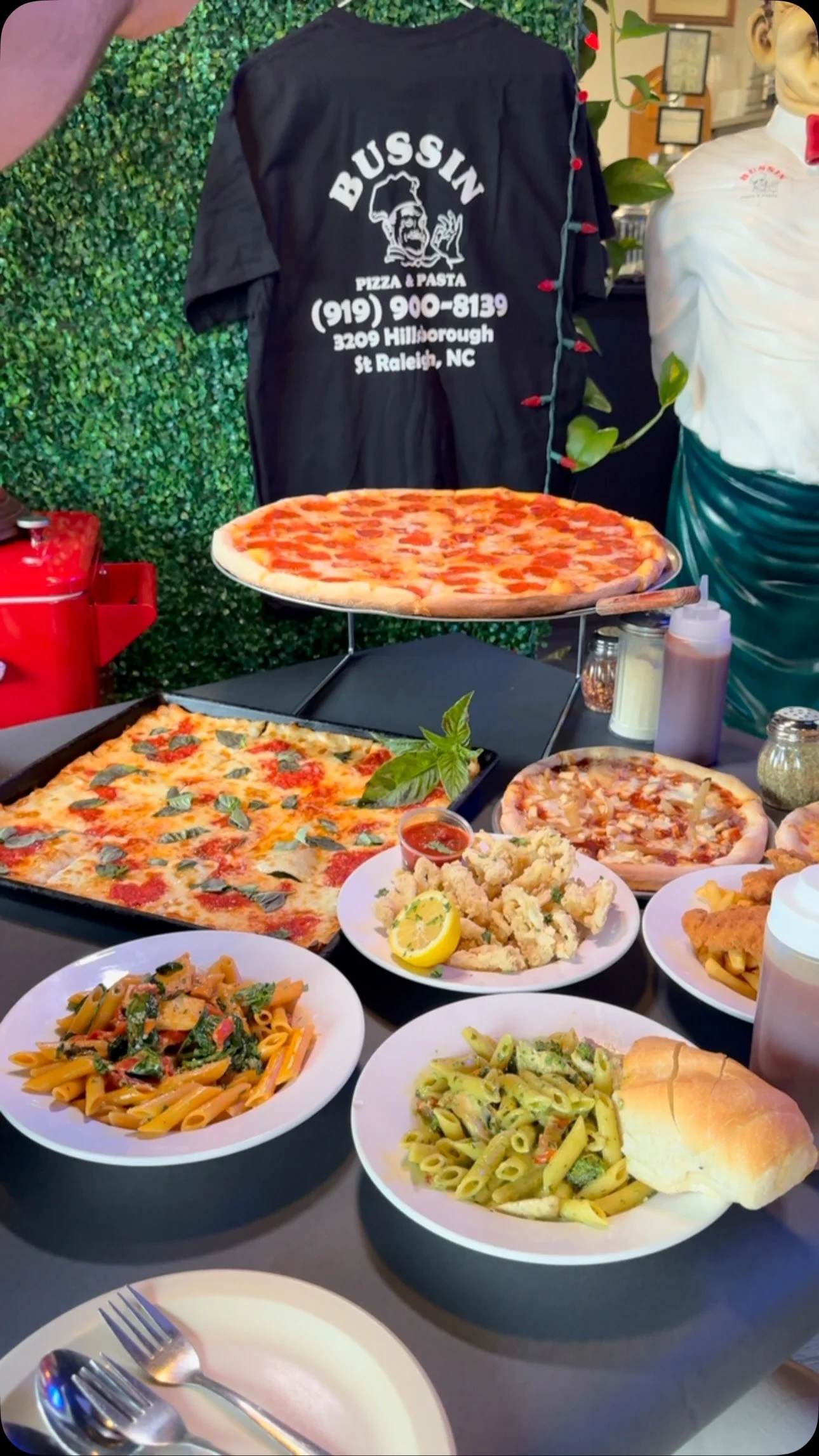BUSSIN NEW YORK STYLE PIZZAS AND YOUR FAVORITE PASTA DISHES. VIEW MENU ORDER NOW. PHONE ORDER ORDER ONLINE PICKUP DOORDASH DELIVERY new location.3209 Hillsborough st.Raleigh, nc 27607919-900-8139 #BUSSINPIZZA